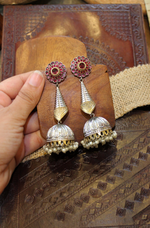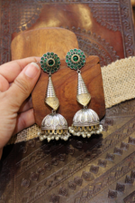 Elevate your style with Preet, a stunning jhumkha crafted from elegant German silver. Featuring a beautiful dual-tone finish and vibrant colorful stones, these earrings bring a perfect blend of traditional charm and contemporary flair. Lightweight...