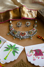 Oxidised Silver and Gold-plated metal, Radiant gemstones, Antique Silver Finish.